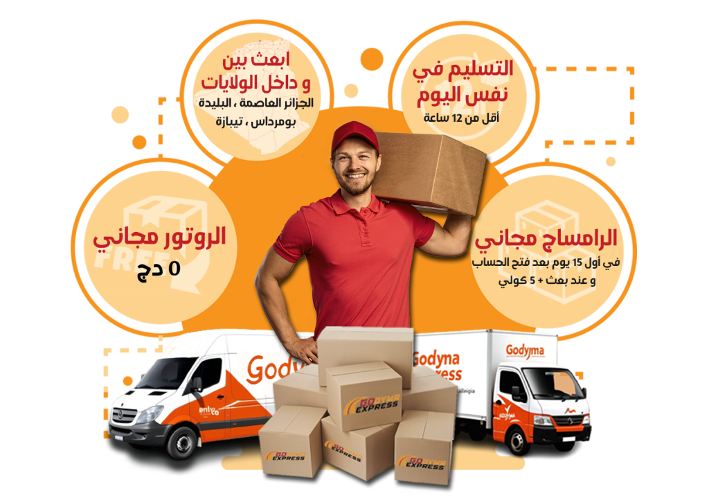 Nous sommes UNE EQUIPE EXPERT En courié express Votre satisfaction, notre engagement ! +213770072673 +213770072517 NOTRE SERVICE SAME DAY À Propos de GODYMA EXPRESS Play Video Propositions de Valeur Trois Raisons de Nous Choisir Flexibilité Adaptabilité à vos besoins spécifiques pour une expérience de livraison sur mesure. Fiabilité Des livraisons ponctuelles et sécurisées assurant la fiabilité à chaque étape. Communication Des mises à jour en temps réel et une équipe dédiée pour une communication transparente. Vous hésitez sur le service de livraison à choisir pour votre entreprise ? Découvrez nos solutions complètes chez Godyma Express